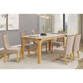 Mesa de Sala Jantar Marina c/ Tampo Madeirado c/ Vidro Curvo 160x80cm Freijo/Off White - DJ Móveis