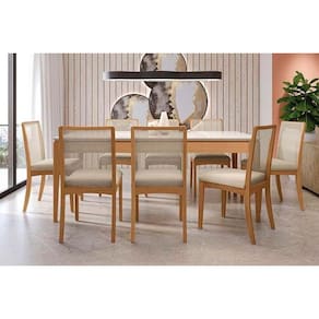 Mesa de Sala Jantar Mira Madeira Maciça c/ Tampo Madeirado c/ Vidro 200x100cm Carvalho/Off White/Vidro Off White - Kappesberg Abaixo segue os produtos do KIT: Mesa de Sala Jantar Mira Madeira Maciça c/ Tampo Madeirado c/ Vidro 200x100cm Carvalho/Off White/Vidro Off White - Kappesberg