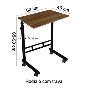 Com medidas de 60 x 40 cm, o tampo da mesa oferece espaço suficiente para acomodar o seu notebook e ainda ter espaço para utilizar o mouse. A altura máxima da mesa é de 88 cm, proporcionando uma posição confortável para utilizar o seu dispositivo. Já a altura mínima é de 67,5 cm, permitindo ajustar de acordo com suas preferências.