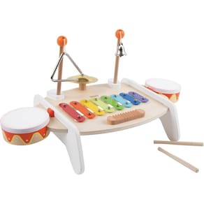 Mesa Musical Madeira Classic World, ou Music Table em seu nome original, é indicada para crianças interessadas em iniciar sua jornada musical. Elas podem brincar com os tambores, xilofone, triângulo, sino e pratos. Com a Mesa Musical Madeira Classic World, as crianças podem experimentar diferentes texturas de som e criar suas próprias melodias.