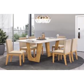 Mesa de Sala Jantar Nala c/ Tampo Madeirado c/ Vidro Curvo 170x90cm Cedro/Off White - DJ Móveis
