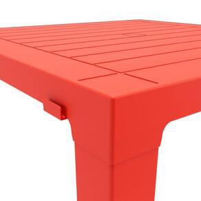 Mesa Niala Quadrada Vermelha 80cm em Polipropileno Plaxmetal, ideal para ambientes internos e externos, com design moderno, resistente e de fácil limpeza. Possui dimensões de 80x80x72,5 cm de altura, acomodando confortavelmente até 4 lugares, sendo perfeita para cozinhas, áreas gourmet, varandas, bares e restaurantes. Fabricada em polipropileno de alta qualidade, oferece durabilidade, estabilidade e excelente acabamento, contando ainda com furação central que permite a instalação de ombrelone, proporcionando mais conforto e funcionalidade ao ambiente.