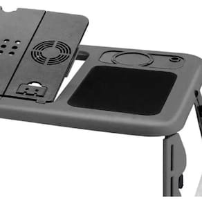 Altura Ajustável: 5 níveis de altura e 5 inclinações diferentes para maior conforto Duplo Cooler Ventilador: sistema de refrigeração para evitar o superaquecimento do notebook Design Portátil e Dobrável: leve e compacto, ideal para na mochila ou maleta Ergonômica e Versátil: ajustável para uso como suporte de notebook, mesa de leitura ou bandeja Acessórios Práticos: inclui porta-copos, porta-canetas, mouse pad macio e extensor USB para maior funcionalidade