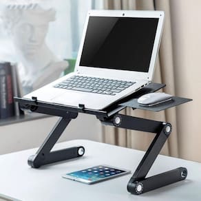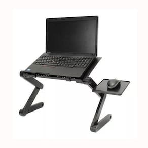 Informações Adicionais: Mesa com suporte articulado para notebook/laptop com mouse pad removível . Possui altura variável, ajuste de ângulo de mesa e travas automáticas com giro 360°. Fácil manuseio, ergonômico, dobrável e muito resistente. Pode levar e utilizar em qualquer lugar como sofá, cama, mesa ou espaço ao ar livre. Possui cooler ventilador com cabo USB na parte traseira. Material: Estrutura liga de alumínio, tampo em ABS e polipropileno. Notebook e mouse não acompanham o produto Homologação Anatel: 078531705567 Ean: 6015950487430