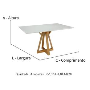 Mesa Nubia Quadrada 1,10x1,10 Para 4 Lugares 1,10x1,10 - Design, Versatilidade e Qualidade para Ambientes Pequenos