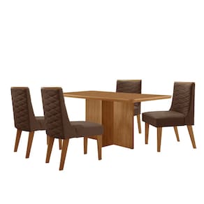 Mesa Olimpia 120 MDF canto copo e com 4 Cadeiras Safira - Marrom Chocolate