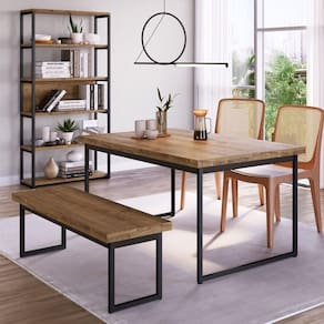 Versátil, harmoniza com bancos ou cadeiras, criando um ambiente acolhedor. O tampo engrossurado de 47mm e o pé em aço carbono 25x25mm, com pintura epóxi preta, oferecem durabilidade e um design contemporâneo.