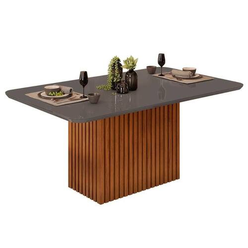 Mesa de Sala Jantar Canes c/ Tampo Madeirado c/ Vidro Curvo 170x90cm Freijo/Cinza Urbano - DJ Móveis