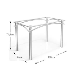 Dimensões(Cm): Comprimento(Profundidade): 64cm x Largura: 110cm x Altura: 74,3cm Material de Estrutura - Aço Tubular Estilo do Móvel - Moderno Tipo de Pintura - Cromada Tipo de Acabamento da Pintura - Pintura Alto Brilho Tipo dos Pés - Pés Metálicos Quantidade de Pés - Móvel possui 4 pés Montagem do Produto - Desmontável Certificação de Qualidade - Qualidade Aprovada Garantia - Garantia Kappesberg 90 Dias