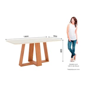 Tamanho do Tampo - Tampo 180 cm x 90 cm Espessura da Estrutura do Tampo - 25 Tipo de Formato Tampo da Mesa - Tampo Retangular Tipo dos Pés - Pés de Madeira Quantidade de Pés - Móvel possui 4 pés