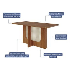 Mesa de Sala Jantar Louise c/ Tampo Madeirado 160x80cm Cinamomo - Cimol