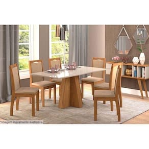 Mesa de Sala Jantar Patricia c/ Tampo Madeirado c/ Vidro 160X80cm Nature/Off White - Cimol