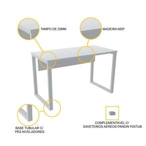 Precisa de ajuda para escolher uma mesa nova para seu escritório? Na dúvida, escolha um clássico atemporal. Essa mesa cinza com tampo de madeira MDP e pés tubulares é a opção mais básica, elegante e simples que você pode encontrar. Ela combina com tudo - certeza que vai combinar com seu ambiente de trabalho. Sem erro - e com muita qualidade - ela pode ser a peça que falta em sua grande empresa ou um item essencial para quem está montando o primeiro escritório. Procura algo menos simples? Fácil: essa mesa de trabalho é compatível com gaveteiros da linha P25 da Pandin, deixando sua escolha ainda mais completa. Peça coringa em uma decoração multicolorida ou a estrela da cena em um ambiente monocromático clean e discreto, essa mesa faz parte da Linha P25 da Pandin, uma linha com design clássico e cheia de estilo, com diferentes combinações de cores, perfeita para diversos profissionais e ambientações.