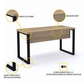 - Mesa para escritório com tampo em madeira (MDP) e base tubular, com pés niveladores.