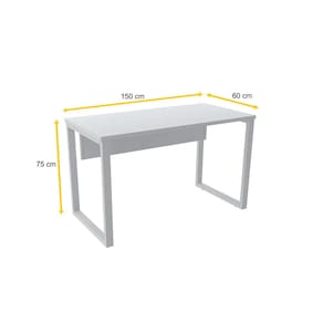 - Mesa para escritório, com tampo em madeira (MDP) e base tubular, com pés niveladores.