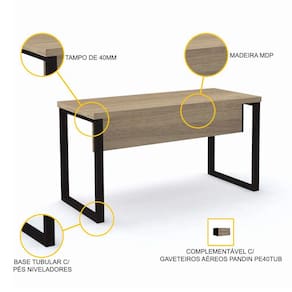 Elegância para compor seu espaço de trabalho sem atrapalhar sua rotina? Essa mesa tem. Espaço para computador, notebook, impressora e todo o seu material de escritório? Essa mesa tem de sobra. Gavetas? Essa mesa não tem, mas pode ter: basta acrescentar um gaveteiro aéreo da mesma linha! Essa mesa para escritório com pés tubulares pretos e tampo de madeira MDP na cor de madeira naturalle (em tom natural) é a solução para quem está à procura de um móvel com excelente custo-benefício para caber no orçamento e no projeto de decoração. Grande e versátil, essa mesa se adapta a escritórios de advocacia, indústrias, consultórios, escolas, home-offices e todo tipo de empresas. Em quatro cores elegantes - imbuia, naturalle, nogueira e walnut - essa peça faz parte da linha PE40 da Pandin, que combina design clássico e sofisticado com beleza, funcionalidade e muito estilo. Para que seu projeto fique completo, consulte nossa loja e encontre as outras opções de mesas modulares, simples ou com gavetas desta linha. Confira também os arquivos, estantes, gaveteiros e armários que complementam sua escolha.