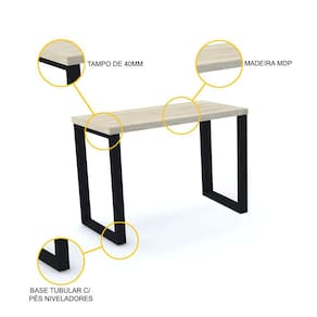 DETALHES DO PRODUTO- Mesa para escritório com tampo em madeira (MDP) e base tubular, com pés niveladores.