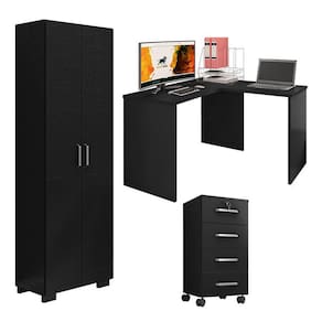 Mesa para computador com Extensora e Gaveteiro Gávea com Chave 4 Gavetas e Livreiro Office com Portas Grandes Preto Fosco - Móveis Leão