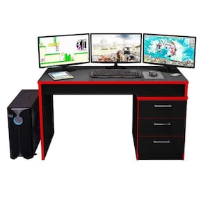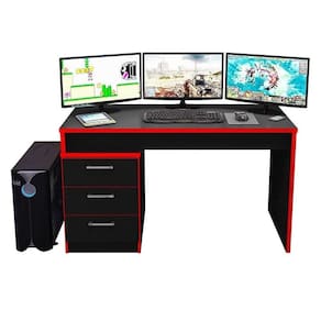 Mesa para Computador Gamer Ambiente DRX 5000 Preto Trama Vermelho - Móveis Leão