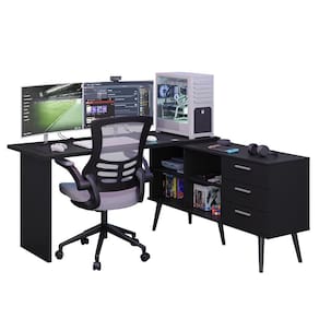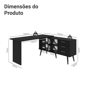 Com design moderno e formato em L, oferece maior aproveitamento do espaço e quatro possibilidades de montagem, se adaptando facilmente ao seu ambiente. Seu acabamento preto transmite um visual elegante e combina com diferentes estilos de decoração.