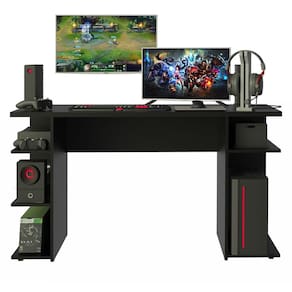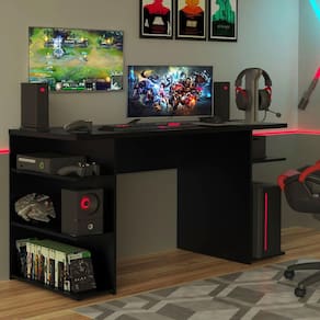 Perfeita para jogar no computador ou no videogame, seu tampo reforçado tem lugar para tudo: monitor, teclado, mouse, caixa de som e o que mais você precisar.