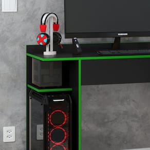 Pensando nos jogares e estudantes de plantão, a Lojas RPM trouxe a Mesa Gamer RTX 9409. Com design moderno, amplo espaço e com diversas cores sensacionais, ela será ideal para seus momentos de descontração ou estudos. Produzido em MDP, o que garante maior resistência e duração do produto, possui nichos para armazenar seu CPU e estabilizador, pés em plástico e passa fio para auxiliar na instalação do seu PC.