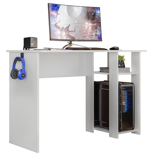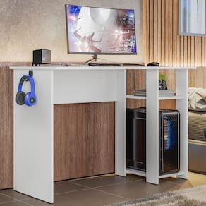 ESPECIFICAÇÕES: Estrutura em MDP Pintura UV Prateleira elevada para CPU Suporte para fone de ouvido Design compacto e funcional