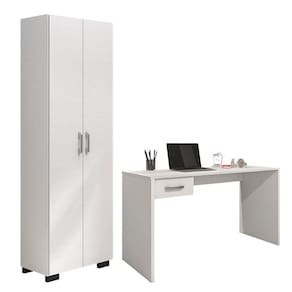 Mesa para Computador Gávea com Gaveta e Livreiro Office com Portas Grandes Branco Trama - Móveis Leão