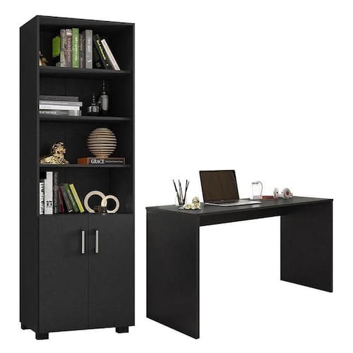 Mesa para Computador Gávea e Livreiro Office com Portas Pequenas Preto Trama - Móveis Leão