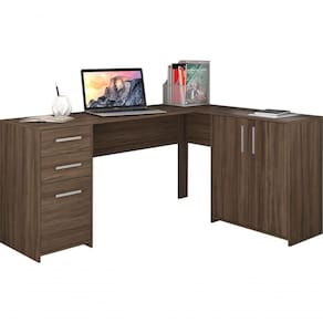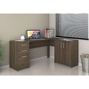 Mesa Para Computador Office Nt 2005 Nogal - Notável Permitindo um excelente aproveitamento do espaço devido a sua montagem em L, a Mesa Office NT 2005 - Notável é perfeita para a realização das atividades de trabalho e estudos. Permite a montagem das gavetas para o lado direto e esquerdo. Pode ser usada encostada ou não na parede, pois possui acabamento dos dois ões do Produto montado:Altura: 74 cmLargura: 157/123 cmProfundidade: 45/36 cmObservações:- Possui prateleira interna;- Puxador em alumínio;- Acabamento nos fundos;- Pintura Ultravioleta com acabamento amadeirado.
