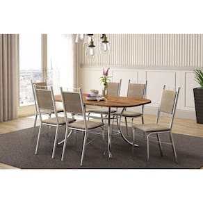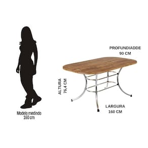 Mesa de Sala Jantar 1547 Aço c/Tampo Madeirado 160x90cm Freijo c/ Prata - Carraro