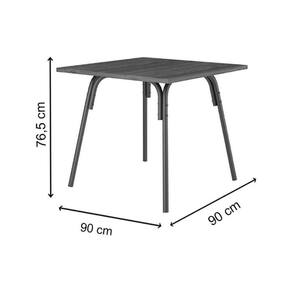 Tamanho do Tampo - 90x90 Espessura da Estrutura do Tampo - 25 Tipo de Formato Tampo da Mesa - Tampo Quadrado Tipo das Quinas do Tampo da Mesa - Canto Reto Tipo dos Pés - Proteção dos Pés em PVC Quantidade de Pés - Móvel possui 4 pés