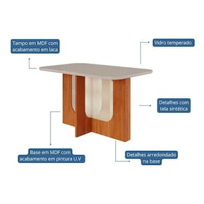 Mesa de Sala Jantar Louise c/ Tampo Madeirado c/ Vidro 130x80cm Cinamomo/Off White - Cimol Marca: Cimol