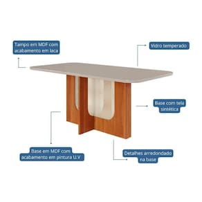 Mesa de Sala Jantar Louise c/ Tampo Madeirado c/ Vidro 180x90cm Cinamomo/Off White - Cimol Marca: Cimol