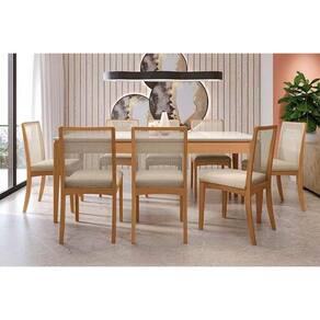 Abaixo segue os produtos do KIT: Mesa de Sala Jantar Mira Madeira Maciça c/ Tampo Madeirado c/ Vidro 200x100cm Carvalho/Preto fosco/Vidro preto - Kappesberg