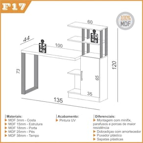 Itens Inclusos: 1 Mesa para Escritório (F17)