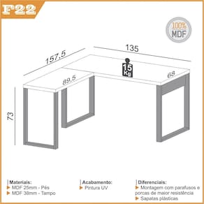 Itens Inclusos: 1 Mesa para Escritório (F22)