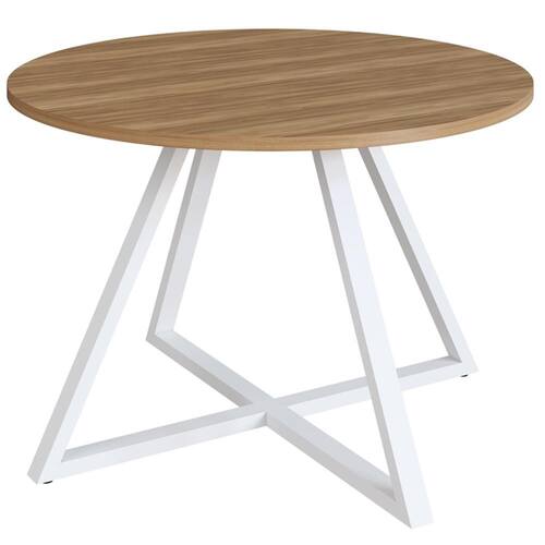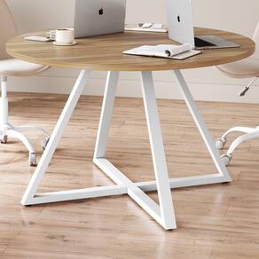 Mesa de Escritório Office 25916, design moderno com estrutura ideal para seu escritório! Possui tampo redondo em MDP (25 mm) com acabamento BP. A base é composta por pés metálicos em aço (pintura epóxi) dispostos em formato geométrico triangular cruzado, garantindo maior estabilidade e elegância ao móvel. Acomoda até 4 cadeiras e conta com sapatas reguláveis para melhor nivelamento em diferentes tipos de piso. Produto será entregue em 02 volumes.