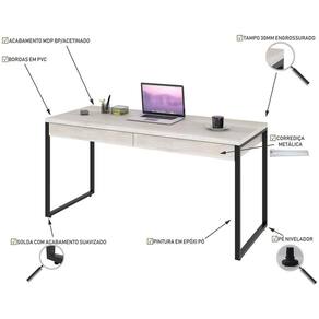 A Mesa Diretor KUME6152 tem montagem simples e versátil, conta com 02 gavetas embutidas e pode ser utilizada em diversas composições com outros móveis. A Linha Kuadra tem seu design com inspiração no estilo industrial, que remete muito a decoração usada nos Lofts das grandes metrópoles nos anos 60 e 70. Harmonizando o metal e os tons de madeira, foram projetados móveis versáteis e com estilo, que podem compor ambientes flexíveis cheios de personalidade, perfeitos para você decorar sua casa ou seu trabalho, tendo um resultado que caminha do estilo rústico ao moderno. Acabamento: BP Acabamento da Gaveta: BP Acabamento da Porta: Acabamento da Prateleira: Acabamento dos Pés: Altura: 75 Altura dos Pés: Ambiente Principal: Escritório Complexidade da Montagem: Média: pode ser montado por mais de uma pessoa e/ou necessite de maior conhecimento para montagem Cr: Snow Cr do Produto: Snow Cr Flex: Cr Interna: Snow Escala de Brilho: Fosco Escala de Brilho da Gaveta: Fosco Escala de Brilho da Porta: Escala de Brilho da Prateleira: Estilo: Industrial Formato: Retangular Gaveta com Chave: Não Informações Complementares: Itens Inclusos: 1 Mesa e Manual de Montagem Largura: 150 Largura Frontal: Largura Lateral: Linha ou Coleção: Kuadra Manual de Especificação Técnica: Manual de Montagem e Instalação: https://cdn2.madeiramadeira.com.br/atributo/compace-dalex/839676-mesa-kuadra.pdf Material da Gaveta: MDP Material da Porta: Material da Prateleira: Material do Puxador da Gaveta: Material do Puxador da Porta: Material dos Pés: Aço Material Principal: MDP Montagem Flex: Necessita Montagem: Sim Origem do Produto: Nacional Pés Reguláveis: Peso: 25,11 Peso Máximo por Gaveta: 05 Peso Máximo por Prateleira: Possui Gavetas: 02 Possui Passa Cabos: Não Possui Pés: 02 Possui Porta Objetos: Não Possui Portas: Não Possui Prateleiras: Não Possui Rodízio: Não Possui suporte para CPU: Não Possui Suporte para Teclado: Não Profundidade: 60 Quantidade de Nichos: Recomendações de Uso, Manutenção e Limpeza: Para a limpeza, utilize flanela seca ou pano macio levemente umedecido em água. Utilize um pano seco em seguida. Evite contato com produtos químicos (solventes, thinner, acetona, etc) e não utilize nenhum tipo de esponja de aço. Rodízio com Trava: Sapatas Niveladoras: Sim Sistema de Montagem: Parafusos Suporta Até (kg): 40 Tamanho: Tipo de Corrediça da Gaveta: Metálica Simples Tipo de Dobradiça/Corrediça da Porta: Tipo de Madeira Maciça: Tipo de Madeira Maciça da Gaveta: Tipo de Madeira Maciça da Porta: Tipo de Madeira Maciça da Prateleira: Tipo de Madeira Maciça do Puxador da Gaveta: Tipo de Madeira Maciça do Puxador da Porta: Tipo de Madeira Maciça dos Pés: Tipo de Puxador da Gaveta: Embutido Tipo de Puxador da Porta: