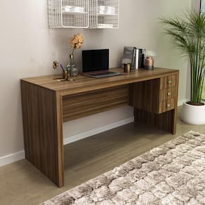 A Mesa para Escritório ME4113 é produzida em MDP 15mm e acabamento BP. Possui 3 puxadores ponto plásticos, 3 gavetas com corrediças metálicas e que suportam até 3 kgs cada e sua montagem pode ser reversível. O acabamento da costa é na cor do móvel. Produto suporta até 24kgs. Conteúdo da embalagem: móvel, ferragens e manual de montagem. A fixação das peças e/ou acessórios é feita por parafusos, cavilhas e minifix. Para uma limpeza mais efetiva, utilizar apenas pano macio umedecido e sabão neutro. Não utilizar produtos abrasivos. Garantia de 03 meses contra defeitos de fabricação. Medidas do produto (AxLxP): 74,5x155x60cm. Peso do produto: 33,5kgs.