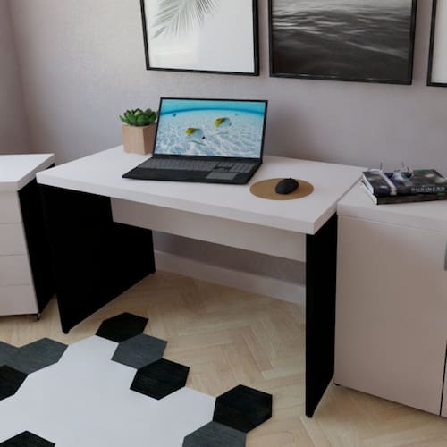 A Coleção Natus organiza qualquer espaço, desde um Home Office até um escritório corporativo. Feito com materiais resistentes e de qualidade, é a melhor opção para trabalhar ou estudar de forma harmoniosa. Disponível em diversas composições de cores para decorar seu ambiente. E vale lembrar que são feitos com material que respeitam o meio ambiente e as normas técnicas de ergonomia. Toda coleção de produtos da Bramov Brasil Móveis são perfeitas para ambientes residenciais, corporativos e executivos! A Mesa tem espessura do tampo engrossado de 40mm e pés com espessura de 25mm. Produto Montado: Sim Acabamento dos Pés: Melamínico Altura dos Pés: 75 cm Ambiente Principal: Escritório codigo_ean: 7908388114193 Complexidade da Montagem: Baixa: pode ser montado por uma pessoa sozinha Cor: Preto/Branco Cor do Produto: Preto/Branco Cor do Tampo: Branco Cor Interna: Preto Dobrável: Não Escala de Brilho: Fosco Espessura do Tampo: 30 mm Formato: Retangular Gaveta com Chave: Não Informações Complementares: Produzido com Chapa da Arauco e Eucatex, que respeitam o meio ambiente Itens Inclusos: 1 Mesa, Ferragens e Manual de Montagem Linha ou Coleção: Natus Manual de Montagem e Instalação: https://product-hub-prd.madeiramadeira.com.br/615186/documents/b1eab32c-1f3f-465c-ae47-8a615ce88f26600221meren4311manual.pdf Marca: Bramov Móveis Material Principal: MDP Modelo Infantil: Não Montagem Flex: Sim, mesa simétrica. Necessita Montagem: Sim Origem do Produto: Nacional Pés Reguláveis: Não Peso: 30 kg Possui Acabamento na Parte de Trás: Sim Possui Passa Cabos: Não Possui Pés: 02 Possui Porta Objetos: Não Possui Portas: Não Possui Prateleiras: Não Possui Suporte para Teclado: Não Recomendações de Uso, Manutenção e Limpeza: Limpar apenas com pano macio levemente umedecido. Sapatas Niveladoras: Sim Sistema de Montagem: Parafusos e Minifix Suporta Até (kg): 30 kg