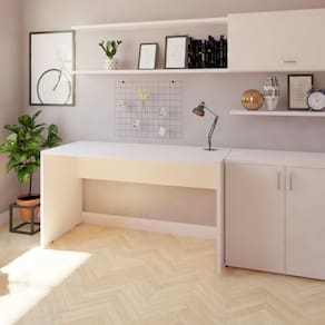 A Coleção Corp organiza qualquer espaço, desde um Home Office até um escritório corporativo. Feito com materiais resistentes e de qualidade, é a melhor opção para trabalhar ou estudar de forma harmoniosa. Disponível em diversas composições de cores para decorar seu ambiente. E vale lembrar que são feitos com material que respeitam o meio ambiente e as normas técnicas de ergonomia. Toda coleção de produtos da Bramov Brasil Móveis são perfeitas para ambientes residenciais, corporativos e executivos. A Mesa tem espessura do tampo de 25mm e pés com espessura de 25mm. Produto Montado: Sim Altura dos Pés: 75 cm Ambiente Principal: Escritório codigo_ean: 7908388145326 Complexidade da Montagem: Baixa: pode ser montado por uma pessoa sozinha Cor: Branca Cor do Produto: Branca Cor do Tampo: Branco Cor Interna: Branco Dobrável: Não Escala de Brilho: Fosco Espessura do Tampo: 25 mm Formato: Retangular Gaveta com Chave: Não Informações Complementares: Produzido com Chapa da Arauco e Eucatex, empresas que respeitam o meio ambiente. Itens Inclusos: 1 Mesa, Ferragens e Manual de Montagem Linha ou Coleção: Corp 25 Manual de Montagem e Instalação: https://product-hub-prd.madeiramadeira.com.br/619943/documents/87f11f05-7e26-4a17-bd9c-0002ab1639ba5bb56633704merecp108manual.pdf Material Principal: MDF Necessita Montagem: Sim Origem do Produto: Nacional Pés Reguláveis: Não Peso: 28 kg Possui Passa Cabos: Não Possui Pés: 02 Possui Porta Objetos: Não Possui Portas: Não Possui Prateleiras: Não Possui Suporte para Teclado: Não Recomendações de Uso, Manutenção e Limpeza: Limpar apenas com pano macio levemente umedecido. Sapatas Niveladoras: Sim Sistema de Montagem: Parafusos e Minifix Suporta Até (kg): 30 kg Ean: 7908388145326