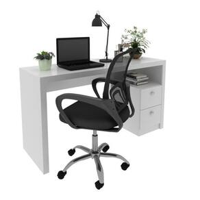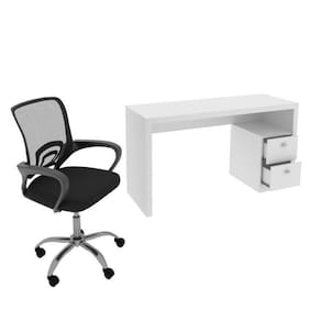 Mesa para Escritório 2 Gavetas ME4130 com Cadeira para Escritório Diretor Tela Mesh Tok 3310 Branco/Preto