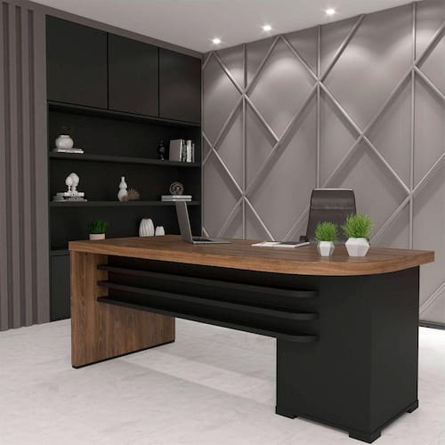 O(a) Mesa para Escritório 4 Gavetas Charuto/Preto 006107 - Artany Móveis é produzido em MDP e BP na escala de brilho Semi-Brilho, e possui um grau de dificuldade de montagem: Médio.