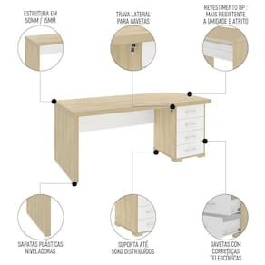 Se você procura uma mesa de escritório que seja prática e estilosa, a Mesa para Escritório com Gavetas Lado Direito Corp A06 Carvalho/Branco, da Mpozenato, é a escolha perfeita.