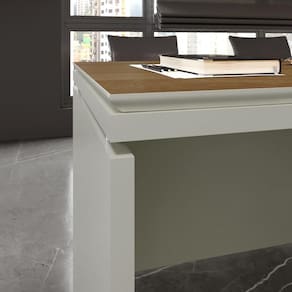 A Mesa de Escritório Tundra foi projetada para quem busca elegância e um design superior em seu ambiente de trabalho. Detalhes como o tampo duplo com bordas chanfradas e laqueadas, apoiado por distanciadores cromados, criam um visual sofisticado e moderno. A estrutura robusta em MDP de 25mm e as sapatas niveladoras garantem a combinação perfeita de estilo e estabilidade.