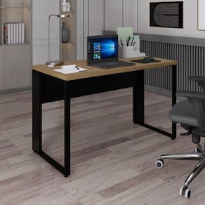 haste metálica com regulagem através de rosca 5/16. Altura do Conjunto: 75 cm Ambiente: null Ambiente Principal: Escritório Cor: Marrom/Preto Informação Complementar: 1x Mesa Escritório Diretor 120x60cm Tampo com 30mm Pé Quadro Amadeirado /Preto Largura: 120 cm Altura: 75 cm Peso: 28,27 kg Profundidade: 60 cm Necessita Montagem: Sim