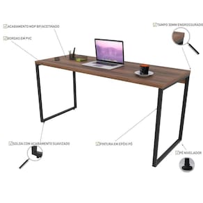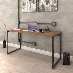 A linha Kuadra tem seu design com inspiração no estilo industrial, que remete muito a decoração utilizada nos lofts das grandes metrópoles nos anos 60 e 70. Harmonizando o metal e os tons de madeira, foram projetados móveis versáteis e com estilo, que podem compor ambientes flexíveis cheios de personalidade, perfeitos para você decorar sua casa ou seu trabalho, tendo um resultado que caminha do estilo rústico ao moderno. Suas estruturas são fabricadas em aço, com soldas suavizadas e pintura texturizada epóxi-pó. Conta com pés niveladores de altura e parafusos na Cr preta. Para os tampos são utilizados MDP-BP acetinado com fitas de borda em PVC, dando uma maior durabilidade ao seu móvel. A mesa KUME150 tem montagem simples e versátil, podendo ser utilizada em diversas composições com outros móveis. Possui Suporte para Teclado: Não Possui Passa Cabos: Não Acabamento: BP Acabamento dos Pés: Pintura Altura: 75 cm Altura dos Pés: 72 cm calculo: unidade Complexidade da Montagem: Baixa: pode ser montado por uma pessoa sozinha Cr: Preto Onix Cr do Produto: Preto Onix Cr Interna: Preto Onix Escala de Brilho: Fosco Estilo: Industrial Formato: Retangular Itens Inclusos: 1 Mesa Itens Inclusos: 1 Mesa Largura: 150 cm Linha ou Coleção: Kuadra Manual de Montagem e Instalação: https://cdn2.madeiramadeira.com.br/atributo/compace/391702-mesa-kuadra-manual-web.pdf Material dos Pés: Aço Material Principal: MDP Necessita Montagem: Sim Origem do Produto: Nacional Pés Reguláveis: Sim Peso: 16,57 kg Possui Gavetas: Não Possui Pés: 02 Possui Porta Objetos: Não Possui Portas: Não Possui Prateleiras: Não Possui Rodízio: Não Possui suporte para CPU: Não Profundidade: 60 cm Recomendações de Uso, Manutenção e Limpeza: Para a limpeza, utilize flanela seca ou pano macio levemente umedecido em água. Utilize um pano seco em seguida. Evite contato com produtos químicos (solventes, thinner, acetona, etc) e não utilize nenhum tipo de esponja de aço. Sapatas Niveladoras: Sim Sistema de Montagem: Parafusos status-cadastro: Aprovado Suporta Até (kg): 30 kg Tamanho: