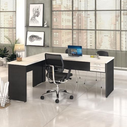 Mesa Para Escritório Em L 1,80x1,60m Tampo E Pés 30mm C/gav. Snow C/preto ônix Sobre o ProdutoModelo: Cor: A Definir No Ato Da CompraDescrição: O conjunto da linha WORK 30 são produtos robustos e que atendem as normas de ergonomia, com design clássico e tradicional, perfeito para escritórios ou ambientes corporativos. Com grande versatilidade pode ser montada em diversas composições, com a mesa de apoio e o gaveteiro na direita ou esquerda, ajustando-se perfeitamente as suas necessidades. Possui 01 escrivaninha diretor, 01 gaveteiro fixo c/02 gavetas e 01 mesa de Inclusos:01 Conjunto Composto Por: 01 Escrivaninha Diretor, 01 Gaveteiro Fixo C/02 Gavetas E 01 Mesa De Apoio. Informações Logí Comp: 1850mm / Prof: 760mm / Alt: 100mm / Vol: 01 / Peso: 51,05 Comp: 430mm / Prof: 340mm / Alt: 80mm / Vol: 01 / Peso: 5,35 KgObservações: Não Acompanha Acessórios Decorativos. Imagens Meramente Ilustrativas.Informações TécnicasMaterial Estrutura / Tampo: Mdp Bp AcetinadoEspessura Do Material: Tampos E Pés 30mm Engrossurado / Estrutura 15mmAcabamento / Revestimento: Bp AcetinadoFita De Borda: Pvc Escala De Brilho: Fosco Gavetas: Sim ? 02 Sem ChaveCorrediças: MetálicasPuxadores: Plástico Abs Pés Niveladores: Sim, Com Regulagem De AlturaNecessita De Montagem: Sim ? Acompanha Manual De MontagemComplexidade Da Montagem: Alta, Deve Ser Montado Por Um Montador EspecializadoEmbalagens: Caixa De Papelão / Cantoneira IsoporGarantia: 06 Meses Contra De Fabricação Medidas Dos Produtos:Escrivaninha C/02gavetas: Comp: 1,80m / Prof: 0,70m / Alt: 0,75m Escrivaninha Auxiliar: Comp: 0,90m / Prof: 0,45m / Alt: 0,75m Material: MDP | Acabamento: BP Acetinado | Escala de Brilho: Fosco | Fita de Borda: PVC | Gavetas: Sim | Corrediças: Metálicas | do modelo: W30ML7182 | Baterias são necessárias?: false | Palavras-chave de Pesquisa: Não Aplicável | da peça: W30ML7182 | de caixas: 1 | Componentes incluídos: Manual de montagem e kit acessórios | Fabricante: Compace | Quantidade de itens: 1 | Principais Características do Produto 0: Escritório | Cor: Multicolorido | Certificação de teste externa: Não aplicável | Principais Características do Produto 1: BP Acetinado | Principais Características do Produto 2: Estrutura de aço | Exige montagem: true | Acabamento do móvel: BP Acetinado | Peso do item: ;unit=kilograms | Dimensões do item P x L x A: width#value=180;depth#unit=centimeters;height#value=75;height#unit=centimeters;depth#value=70;width#unit=centimeters | Dimensões do Produto (A x L x C), sem a caixa de embalagem: | Produto personalizado: | Recursos da Escrivaninha: | Marca: | Móvel Dobrável: | Montagem: | Coleção de Antiguidade: | Recursos da Mesa: | Tipo de Garantia: | Base da Mesa: | Duração da Garantia: | País de Origem: | Desing da Escrivaninha: | Tipo de Mesa: | Código Anvisa do Produto: | Nr. do Lote do Produto: | Tamanho Do Pacote: | Formato do Espelho: | Comprimento: | Data de validade Anvisa: | Altura da Mesa: | Motivo de Isenção Anvisa: | Shape: | Formato da Escrivaninha: | Qtd. de Produto no Lote: | de Assentos: | Temas de Estampas: | Funcionalidades: | Quantidade: | Estilo: Cor: Snow C/Preto Ônix
