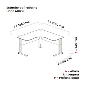 As estações de atendimento e telemarketing são fabricadas com tampos e retaguardas em MDPBP na mais variadas cores, pés estruturais com perfis de acabamento nas cores que combinam com seu gosto. As estações possibilitam montagens diversas, propiciando comodidade e produtividade na execução das tarefas diárias, desempenhando importante papel na organização e eficiência de sua empresa. Acabamento da Base: Pintura Acabamento do Tampo: Melamínico Ambiente Principal: Escritório Complexidade da Montagem: Média: pode ser montado por mais de uma pessoa e/ou necessite de maior conhecimento para montagem Cor: Cinza/Azul Cor da Base: Cinza Cor do Produto: Cinza/Azul Cor do Tampo: Azul Design da Base: Em U Dobrável: Não Escala de Brilho: Semi-Fosco Espessura do Tampo: 15 Extensível: Não Formato: Em L Itens Inclusos: 1 Estação de Trabalho, Manual de Montagem, Kit Ferragens Largura Frontal: 130 cm Largura Lateral: 130 cm Linha ou Coleção: Maxxi Manual de Montagem e Instalação: https://cdn2.madeiramadeira.com.br/atributo/pandin/1336919-11-3306-0041-manual-montagem-estacao-de-trabalho.pdf Material da Base: Aço Material do Tampo: MDP Material Principal: MDP Medida da Base (A x L x P): 130 Medida da Mesa (A x L x P): 130 Medida do Tampo (L x C x E): 61,5cm x 130cm x 0,15cm Necessita Montagem: Sim Origem do Produto: Nacional Peso: 25.1 Possui Passa Cabos: Não Possui Portas: Não Possui prateleira: Não Possui Prateleiras: Não Possui Suporte para Teclado: Não Possui Vidro: Não Quantidade de Lugares: 01 Recomendações de Uso, Manutenção e Limpeza: Utilizar um pano levemente umedecido com água, para finalizar utilizar um pano seco. Sapatas Niveladoras: Sim Sistema de Montagem: Parafusos Suporta Até (kg): 15